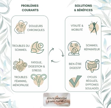 Le corps a sa propre temporalité. Si vos troubles sont installés depuis longtemps, nous ne chercherons pas un "pansement" rapide, mais une véritable régénération qui s'inscrit dans le temps.